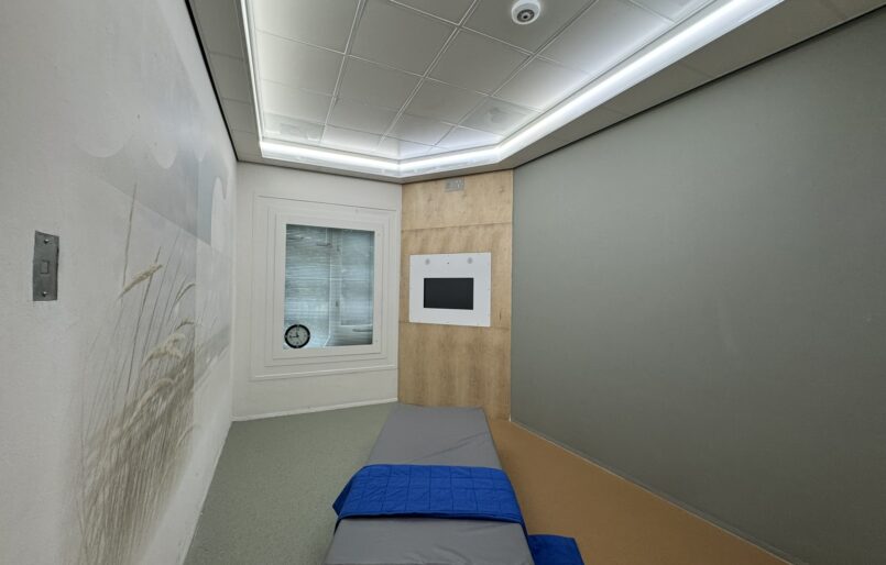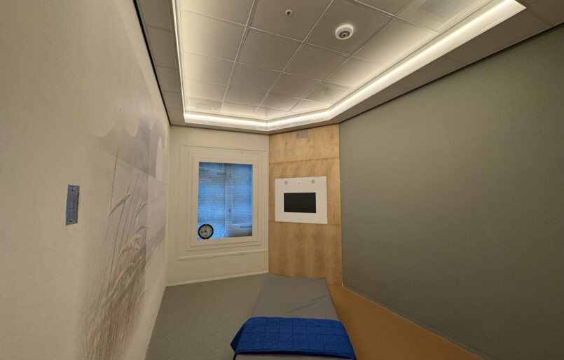 De separeerruimte is uitgerust met biodynamische verlichting, ingesteld op een koele lichtscène.