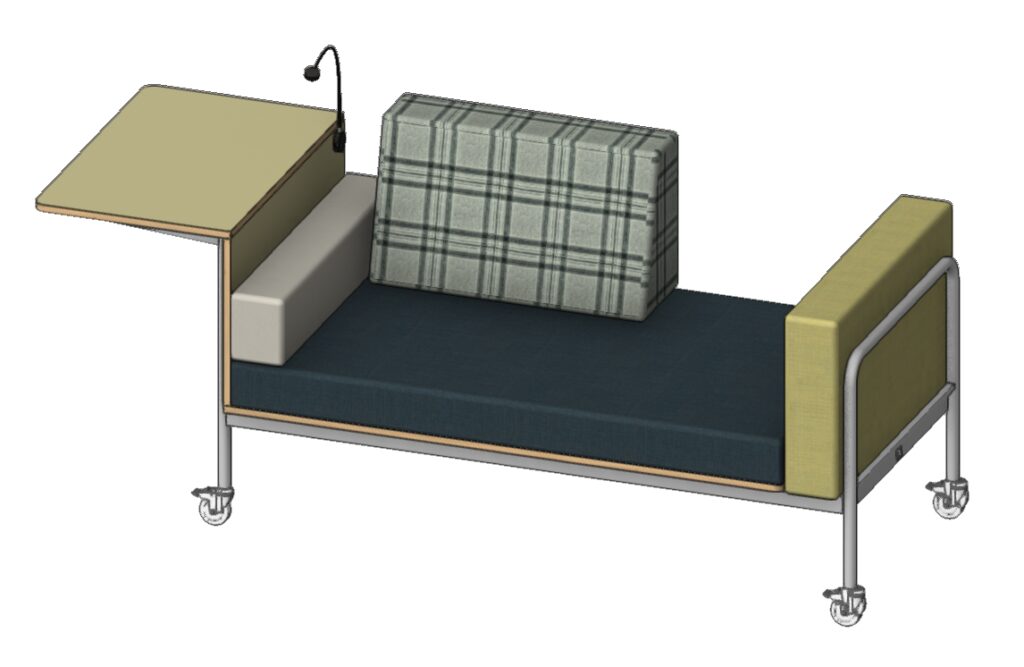 Verblijven in een zorginstelling is namelijk meestal niet leuk. Niet alleen omdat er sprake is van ziekte, beperking en/of pijn, maar ook omdat familieleden en naasten voor een korte of langere periode worden gemist. In deze omstandigheden kan de aanwezigheid en ondersteuning van een vertrouwd persoon helpen om de onrust en angst te verminderen of draaglijker te maken. Met de inzet van PANKKI maakt u verblijven bij een patiënt tot iets heel eenvoudigs. Met deze bed-bankoplossing biedt uw instelling naast kwalitatieve zorg, ook een positieve omgeving waarin herstel extra wordt bevordert. Met PANKKI wordt niet alleen zitten, liggen en aanzitten mogelijk gemaakt, maar ook lezen en persoonlijke apparatuur opladen. PANKKI beschikt namelijk ook over eigen verlichting en een USB-poort.